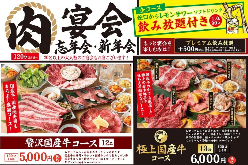 厳選した国産牛をお値打ち価格で提供します。全テーブルに卓上サーバー設置で、レモンサワー飲み放題が人気です!