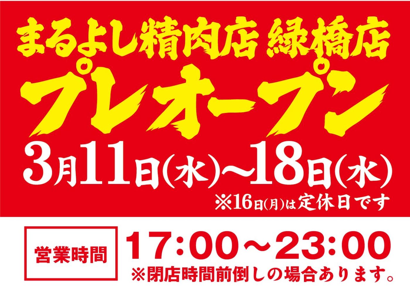 3月11日にまるよし精肉店 緑橋店がプレオープン!